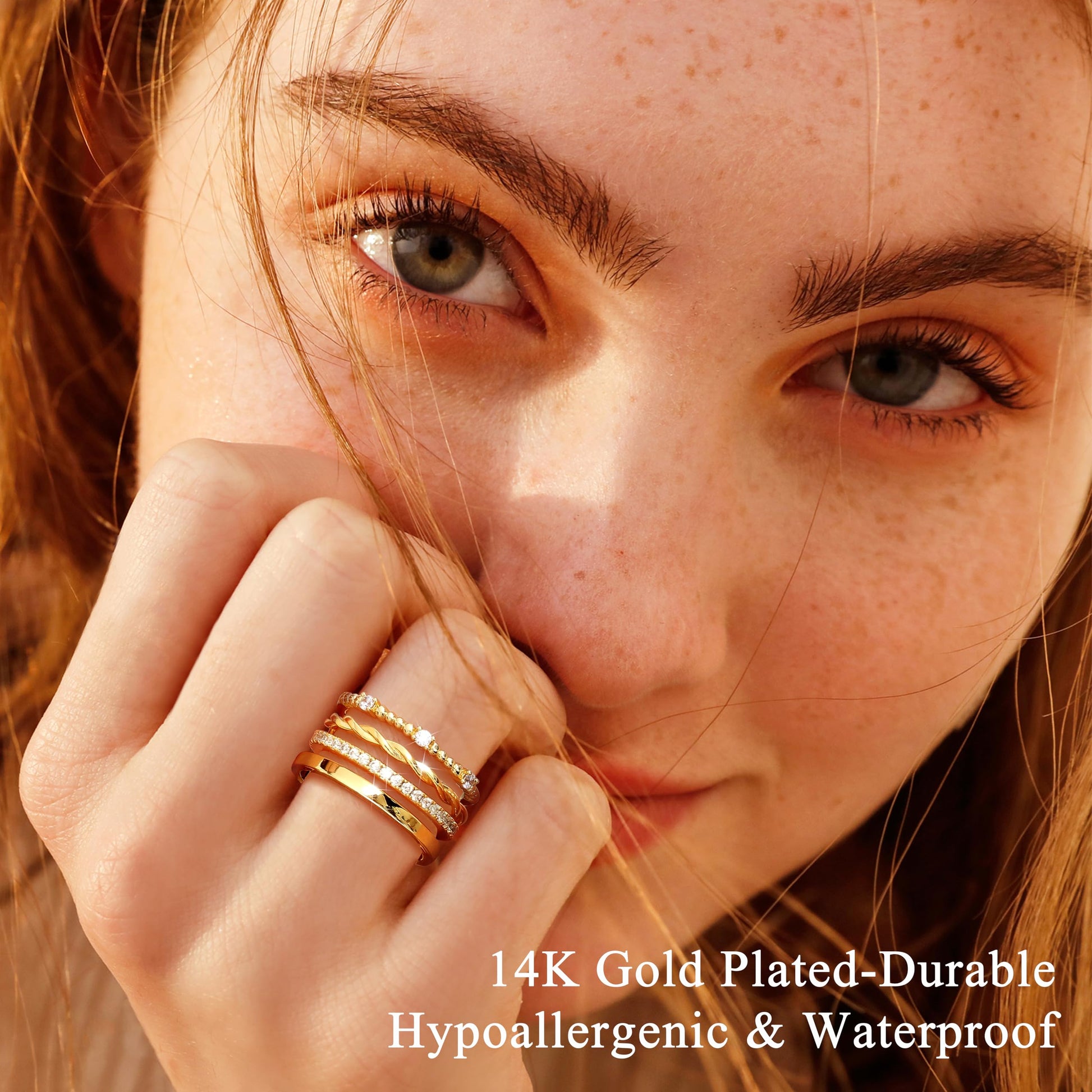 - Premium Non Tarnish Gold Rings: These exquisite gold rings for women are crafted from premium brass with 14K gold plated and genuine cubic zirconia accents. The advanced non-tarnish technology ensures long-lasting shine without discoloration, while the hypoallergenic, nickel-free composition prevents skin irritation