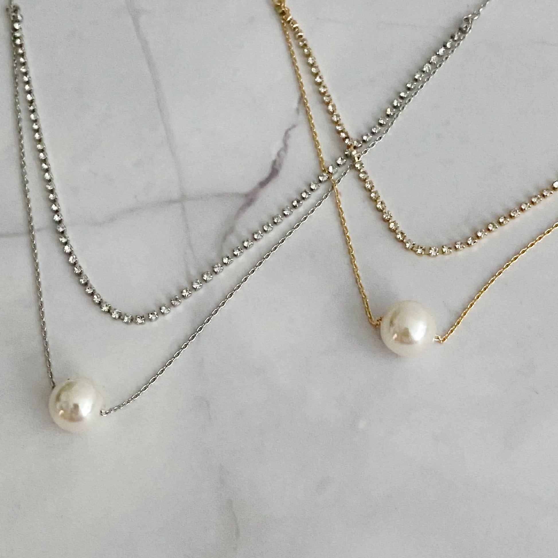 - Design: Two-layer necklace combining a shimmering chain and a refined pearl pendant.